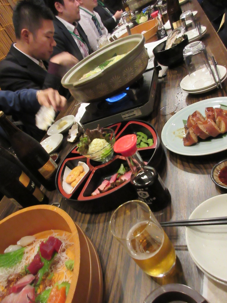 忘年会はどこでやっても変わり映えしない感じがしますが、何か一つテーマを持つと良いと思います。このお店はその名の通り、北海道。メニューも北海道を連想させるものがあります。道産魚貝類の鍋、ホタテ、イカ、ポテト、ジンギスカン、それに国士無双など。東京駅に近いのも良いです。