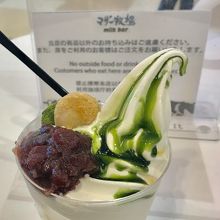 濃厚なソフトクリームの抹茶のパフェをいただきながら