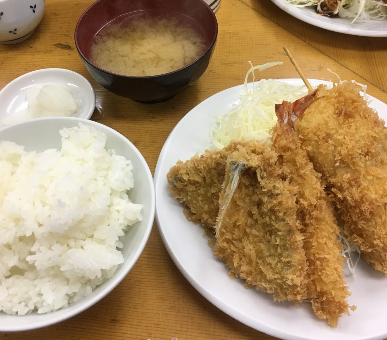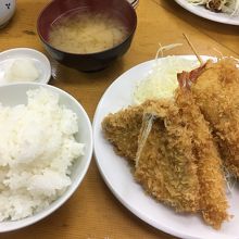 私はミックス定食を注文、他のロースカツやヒレカツなど