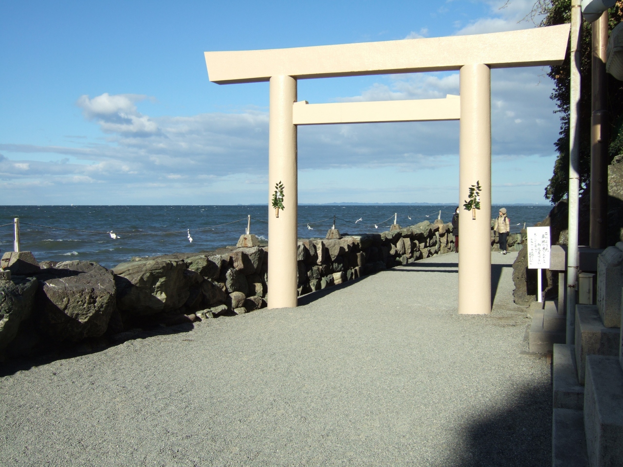 風が強くて海沿いの参道を歩くと波しぶきがかかり、まさに身を清められる感じでした。