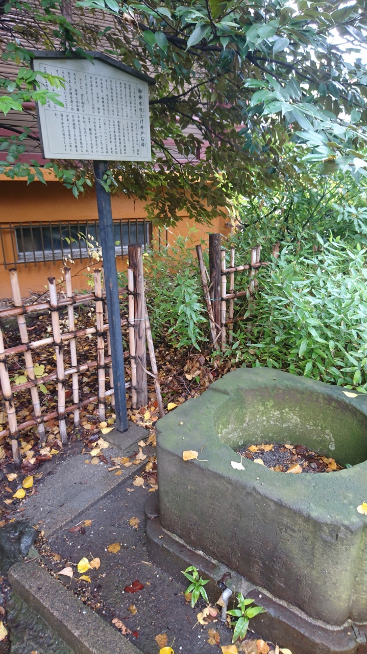 稲毛神社の一角、藤棚の近くに井戸の石枠が置かれていました。かつて水に苦労していた川崎で唯一こんこんと清水が湧いていた井戸が稲毛神社にあり、住民たちに「吹上井戸」と呼ばれて大切にされてたそうです。昭和の初期には水が枯れてしまったそうですが、水を大切にしていた住民の気持ちがよくわかりました。