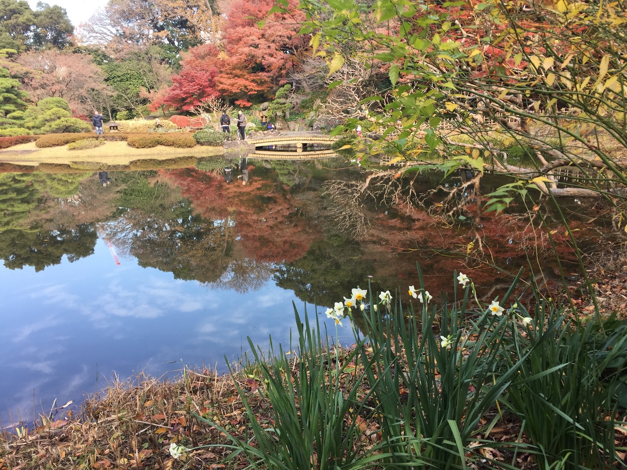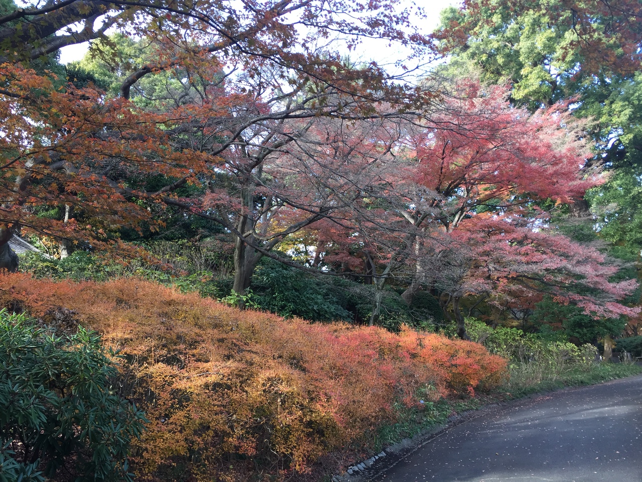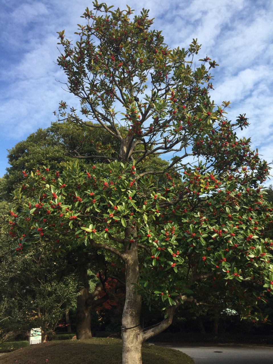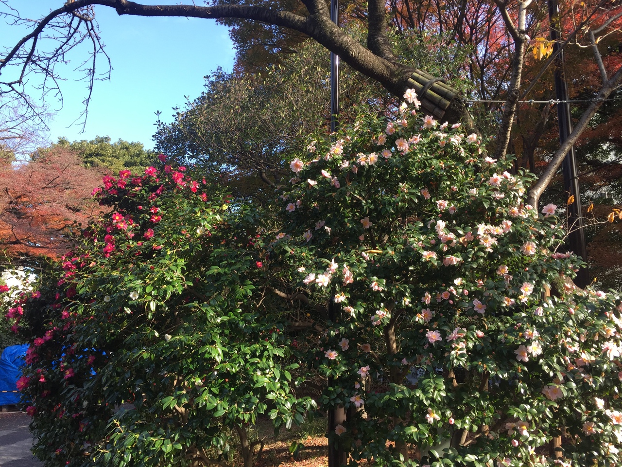 12月だから花は少ないが 赤い実の木 山茶花 が彩りを添えていた。