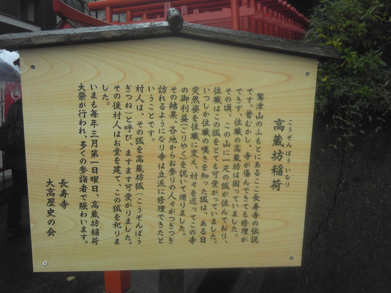 知多四国第87番札所のお寺「長寿寺」のすぐ隣にあります。 赤い鳥居の入り口がとても奇麗です。 この稲荷には、可愛がっていた狐のおかげで、参拝者が増えて、お寺の修復ができたとのいわれがあります。 荘厳な「長寿寺」とともに、ゆっくりと落ち着いて訪問したいところです。