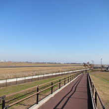 歩きの場合は、公園から更に川内沢川の川べりの雑草生い茂る道に沿って、西側に抜け、再び空港への道路に合流することができます。