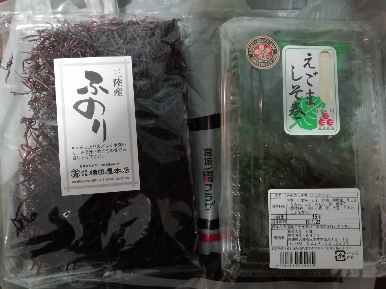 今回は、エゴマのしそ巻き味噌と、気仙沼のふのりを購入しました。