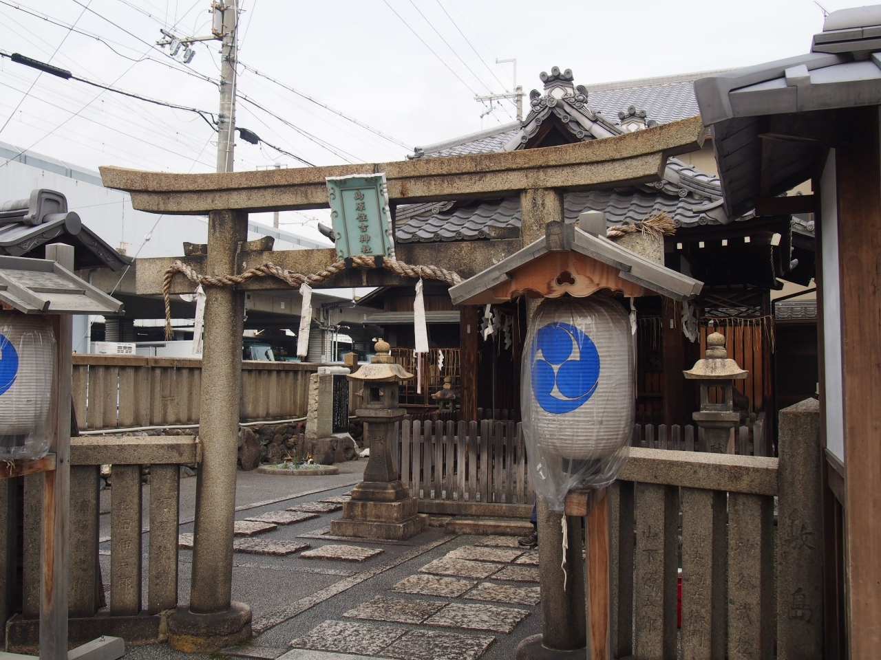 島原西門付近にひっそりとありました。小さいながらも趣のある神社。昔はもっと大きかったに違いありません。角屋に通ったであろう勤労の志士や、新撰組の面々もお参りしたんですかねえ。想像するとちょっと面白い。