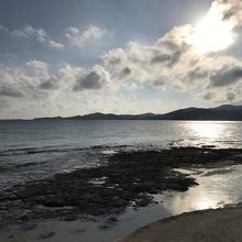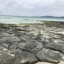 久米島とは橋で結ばれている奥武島に入ってすぐ、バーデハウスの目の前に広がっています。亀の甲羅のような多角形の石が見られます。溶岩が冷えて固まってできたそうです。なるべく干潮時に行くのがお勧めです。2度行きましたが、潮の引き具合によって、見える範囲が全然違いました。上を歩くこともできますが、濡れているところは滑りやすいので、注意が必要です。綺麗な多角形で、まるで人工物のようでした。