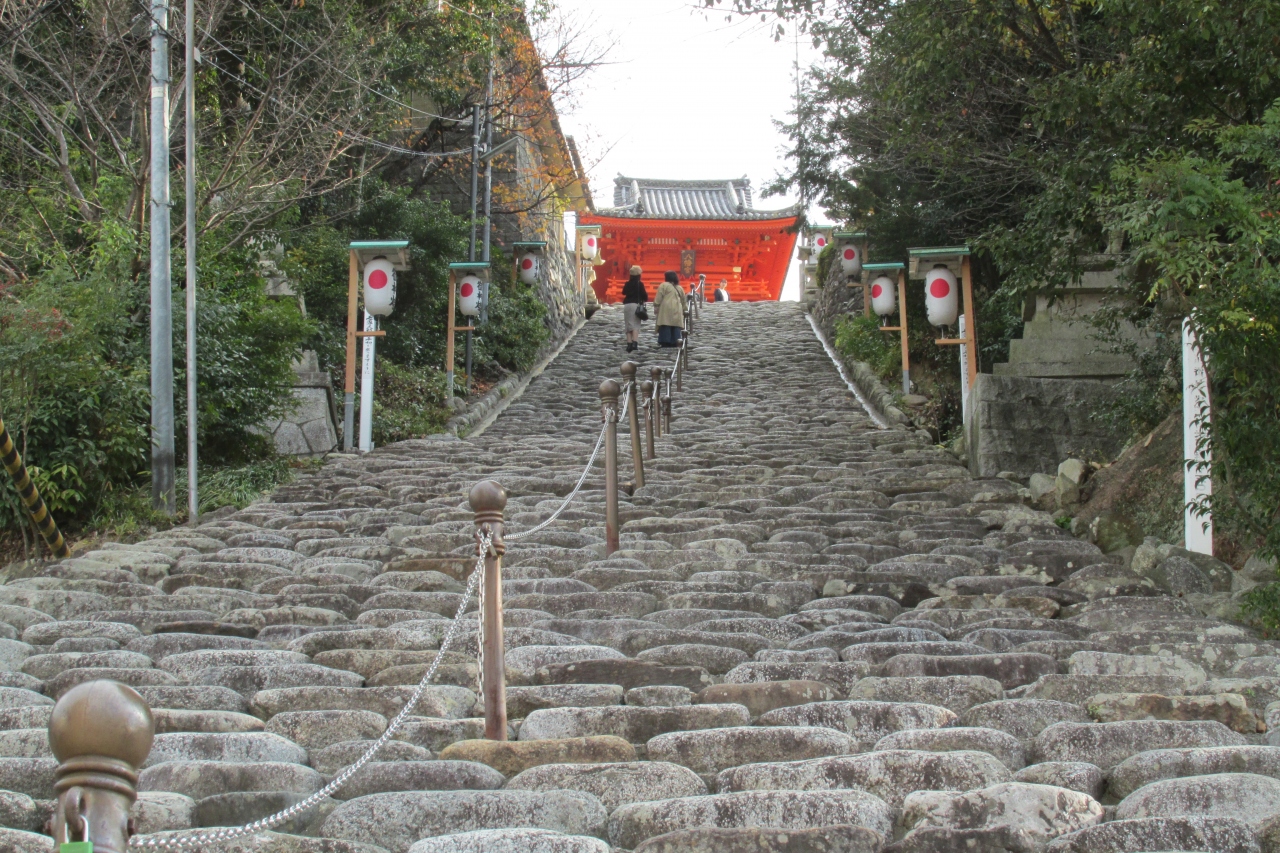鳥居から長い石段を上がったところにありますが、宝厳寺から移動したためそれほど大変なのぼりではありませんでした。神社の裏手には駐車場もあったので、車で訪れることもできます。ここから松山城を望むことができました。