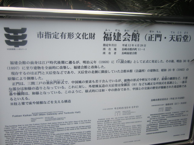 唐人屋敷跡にある見所の四つの建造物の中では、規模的には一番大きく感じるのがこちらです。ここを訪問する際の注意点としては、私は時間を節約しようと、長崎の観光マップに描かれている、土神堂から福建会館への細い道を通じて行ったのですが、実はこのルートだと結局裏側を経由することになり、こちら側には門がなく、結局、唐人屋敷通り沿いの入口まで、遠回りして戻ってくることになってしまいました。このエリアは上部に向かって登っていくレイアウトなので、こういう無駄足をしてしまうと、それだけ無駄に登り下りしてしまうことになります。