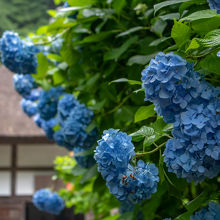 6月下旬の平日、ちょうどあじさいの見ごろの時期に行きました。かやぶき屋根のこちらも非常に絵になる建物です。観光客が多くとても混雑していましたが、堂の前には有名なあじさい地蔵もあり、この時期に行って正解だと思いました。