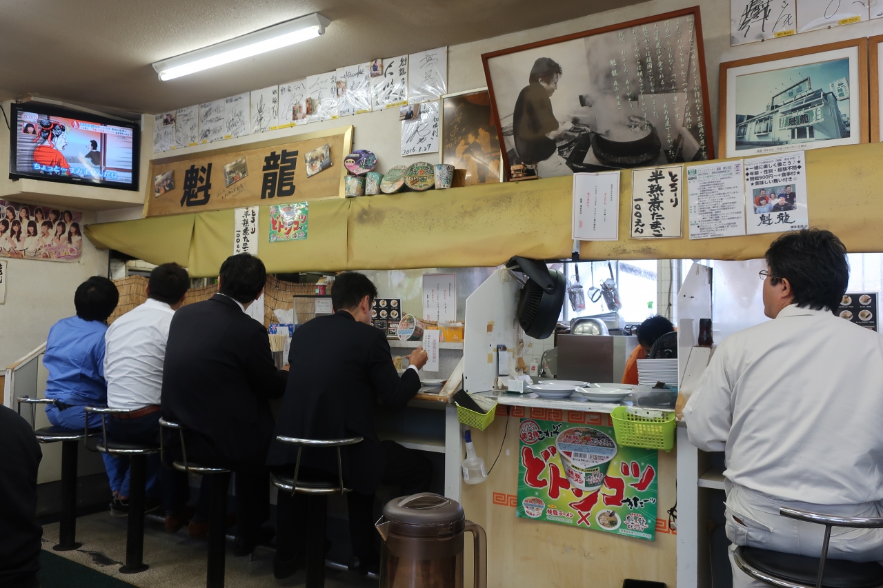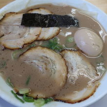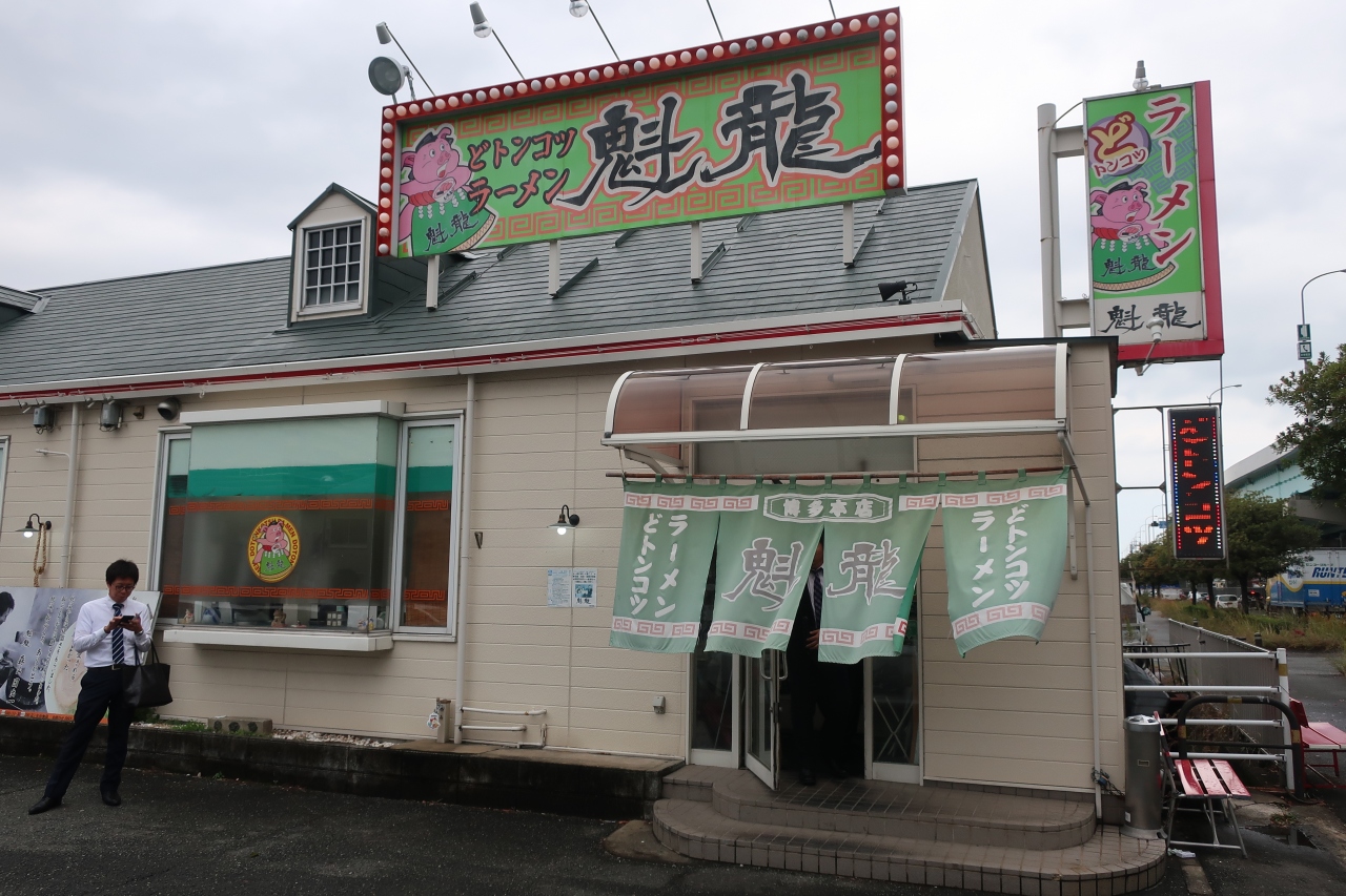 国道3号線南バイパス沿い、福岡空港国際線ターミナル近くにある久留米ラーメンのお店です。平日昼に行くとサラリーマン等で8割程埋まってました。頂いたのは魁龍全部のせラーメン。普通のとんこつラーメンだと思っていたのですが、出てきたラーメンを見てびっくり。ドロドロとまでは言いませんが超濃厚スープでした。チャーシュー、煮玉子、ワンタン、メンマ、海苔、ネギがのったラーメンは見た目は濃厚ですが、味は濃くありませんでした。