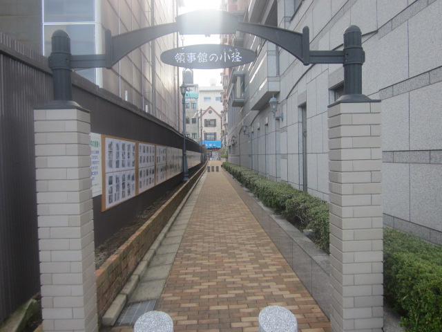 電車通り沿いに面していて、工事が完了すれば恐らくはまた長崎らしい美しい外観を楽しめる建物に生まれ変わるのでしょうが、ここに隣接する旧英国領事館は、長らくの修復工事が進行中で、隣接するこの”領事館の小径”沿いには、沢山の修復工事の進行状況を示す写真が掲示されていて、さながら、工事進行状況資料館のようなテイストになっています。