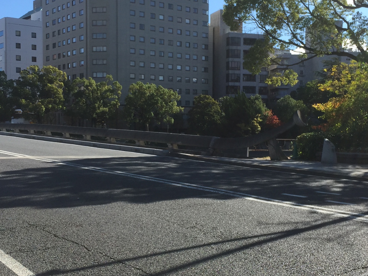 平和記念公園の南側を走る道路が元安川を渡る橋が平和大橋です。欄干のデザインが特徴的で、見た時には、ラッパの吹き口かと思いました。調べてみると、なんと日系アメリカ人のデザイナーであるイサム・ノグチ氏のデザインで、日が昇ることや船の舳先をイメージしているようでした。