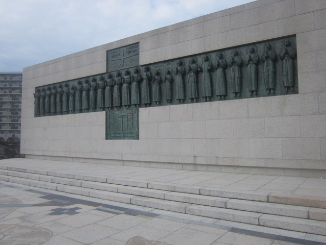 聖人達の歴史的な迫害の経緯はともかくとして、観光客的視点からは、長崎らしい風情で写真が撮れる、しかもここは広い分、色々な角度で撮影できる楽しさがありますので、時間帯や天候、季節などに応じて、様々に変貌する碑の姿を、色々な角度から楽しまれると良いかなと思います。