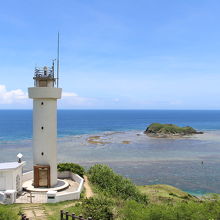 灯台とは逆側が小高い丘になっていて、そこを登っていくと、灯台と海のコラボレーションを見ることができます。石垣島だけでなく灯台にはいくつか行きましたが、こんな感じで海と灯台がマッチした景色を見られるのはそうないと思います。