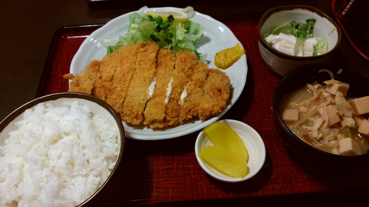チーズかつ定食を頼みましたが、大きさにびっくり!うっかりご飯を小盛にし忘れ、友人に食べて貰いました。女性の方は小盛にした方が無難かも⁉