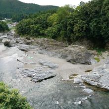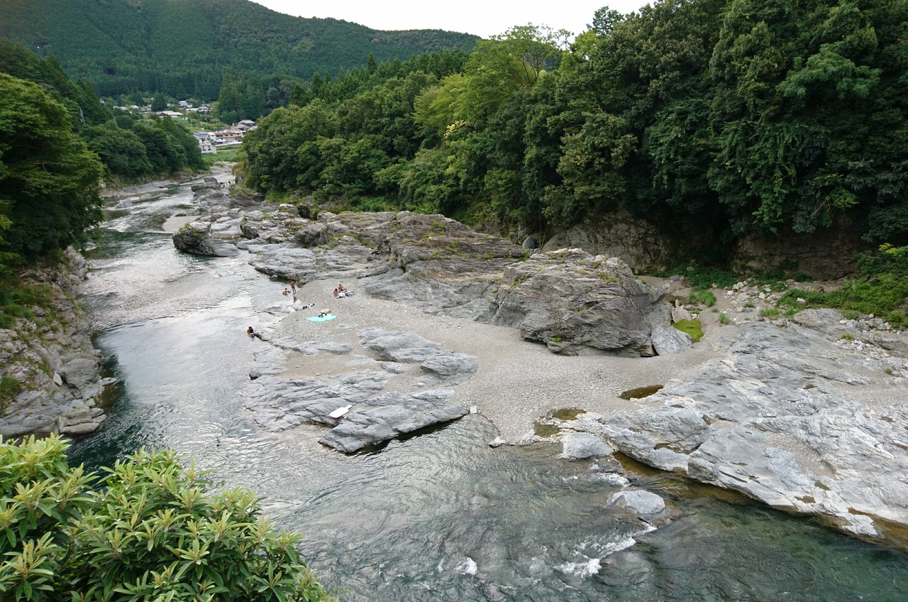 水の流れが岩を削って、巨岩奇岩が両岸に迫り、とても美しい景色です。湖岸には宮滝展望台もありました。また、天武天皇・持統天皇がしばしば訪れた吉野離宮の跡があり、古来から景勝地になっていたようです。