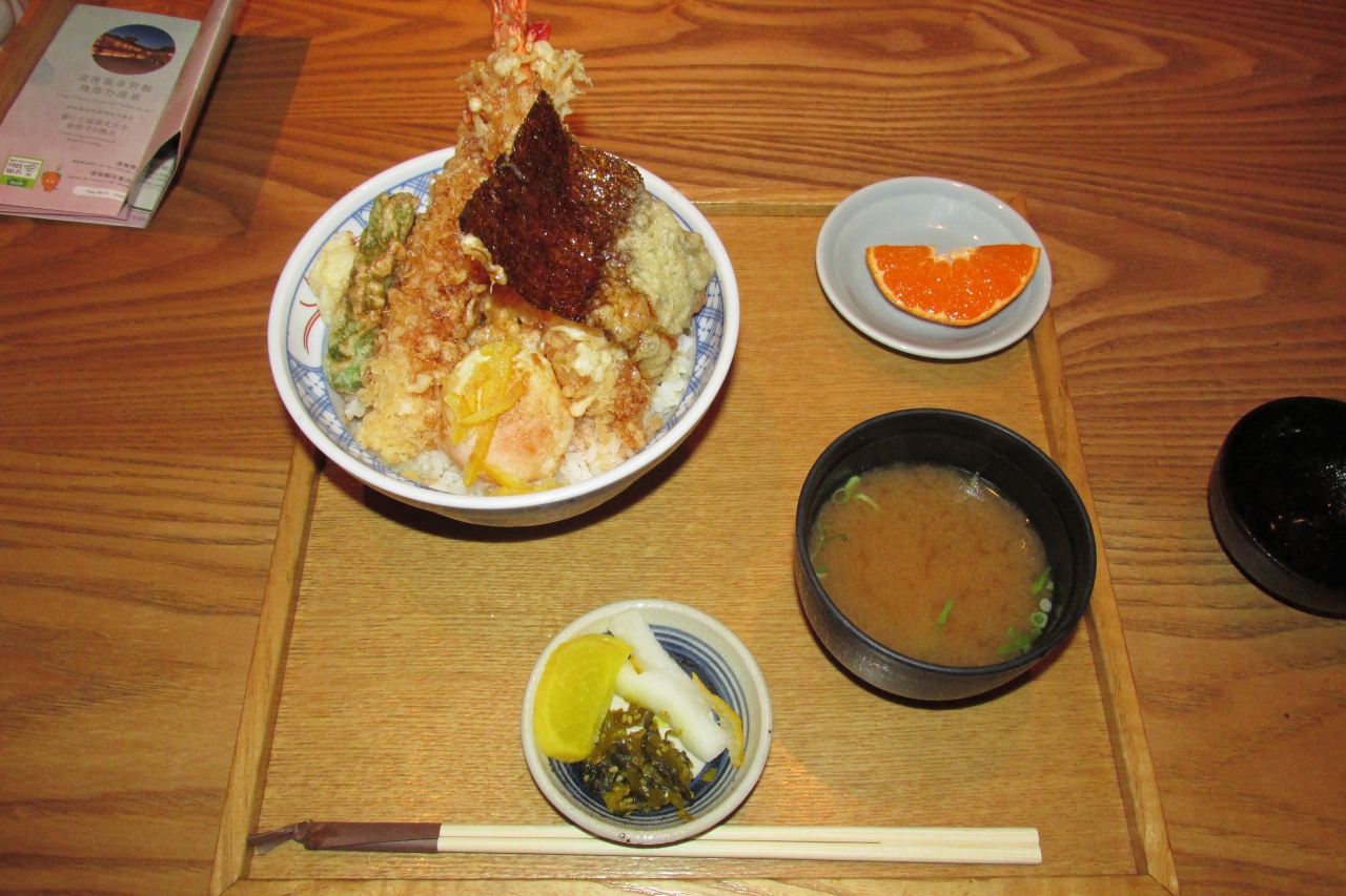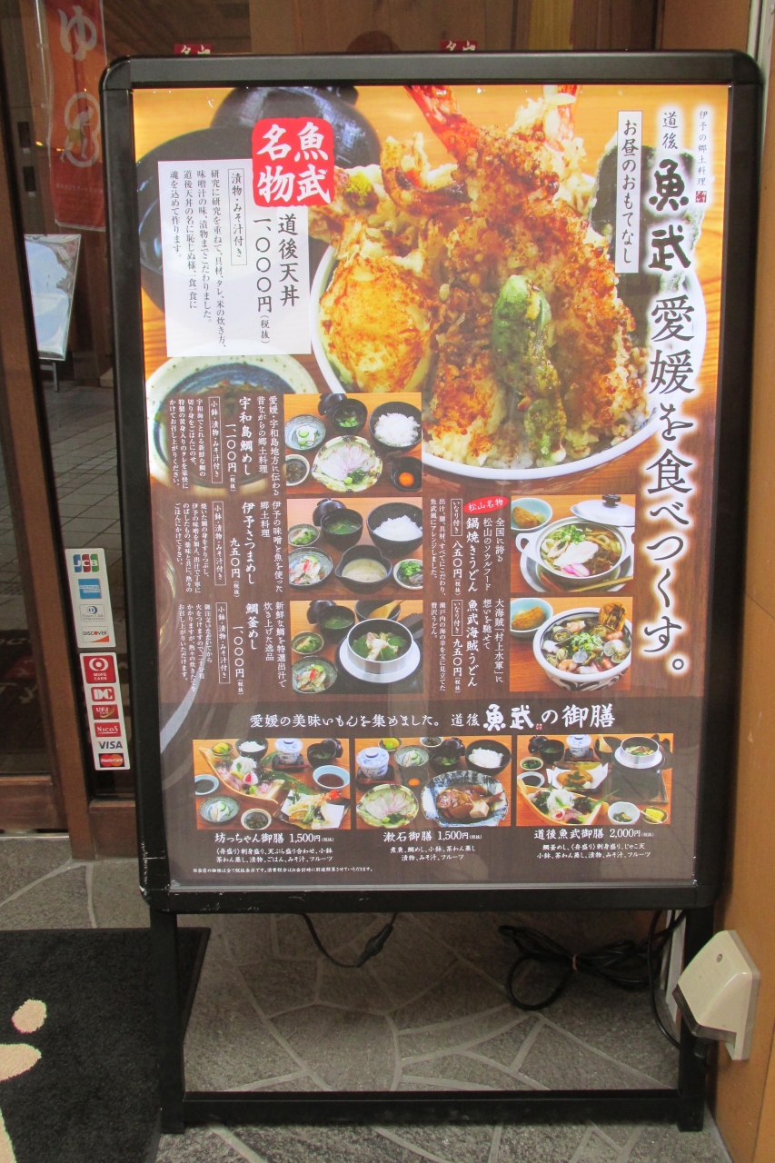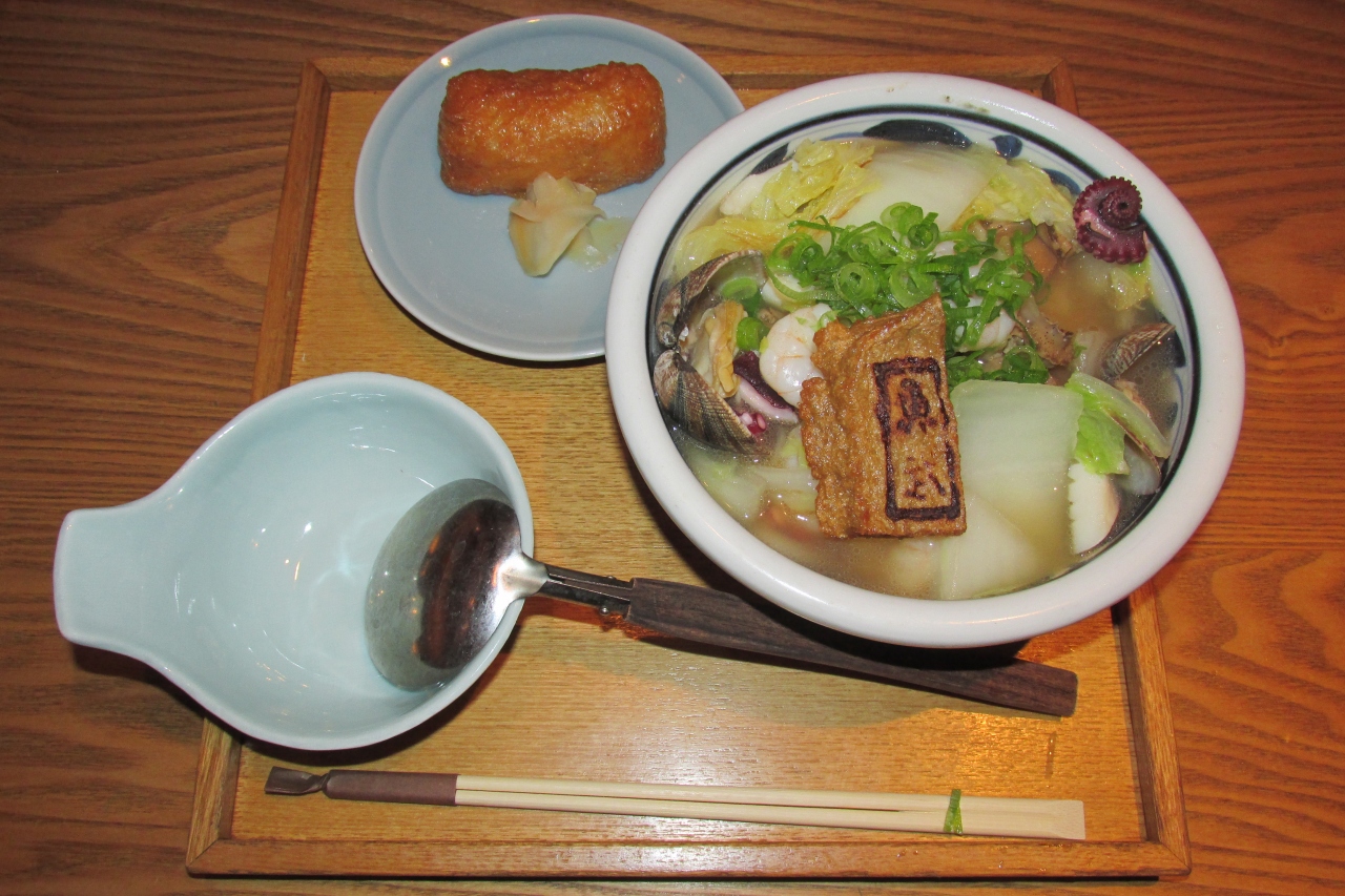道後温泉のハイカラ通りにあるお店です。愛媛産の素材にこだわると聞いたので行ってみました。いただいたのは魚武海賊うどん。魚介類がたくさん入って美味しかったです。連れが食べたのは天丼でしたが、ランチタイムも終わりがけの時間だったためか、油が疲れてしまっていて、ちょっと残念でした。