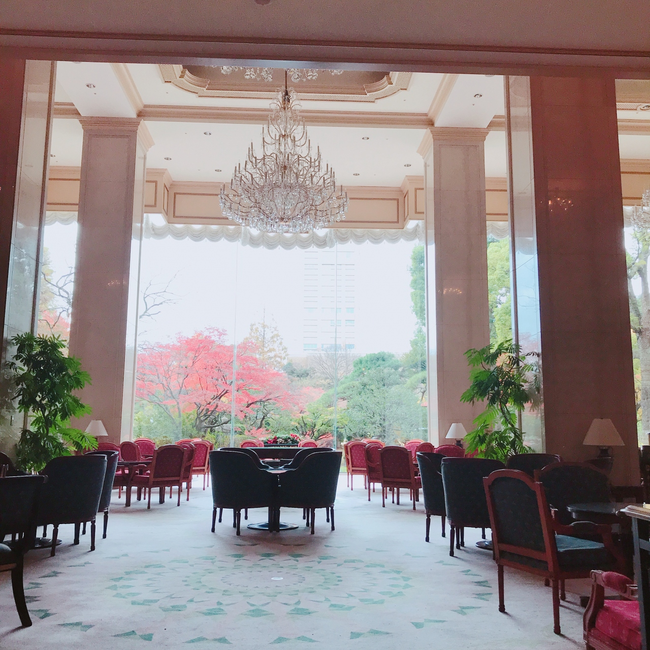 リーガロイヤル1階のメインラウンジです。大阪と同じく、ガーデンに面したとてもすてきなラウンジです。天井も高くシャンデリアがキラキラでテンションは爆アゲってやつです。優雅な気分でティータイムはなんとも至福なり