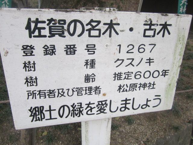 佐賀城跡公園の北東側、外堀の対岸に立地しているのがこちらの神社で、すぐ隣の佐嘉神社とは隣接していて、双方は通路で繋がっています。松原神社としての見所は、何といっても本殿の東側にある大楠で、松原の大楠として根元部分には小さな祠も設置されています。