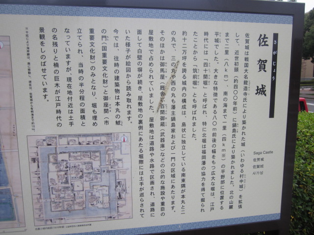 佐賀城は残念ながら天守閣は現存しないお城ですが、そのお堀の規模を見ていると、さぞ立派なお城だったのだろうなと感じさせてくれる風情で、景観としての見応えはある城跡だと思います。お堀の内部エリアには佐賀県庁や各種の博物館や美術館、体育館、図書館や更には小中高校まで揃っていて、鍋島家の佐賀藩が反映していた時代の繁栄を感じる広さです。現代の観光客的な視点からは、規模が大きな三つの文化施設で時間を潰せるので、悪天候時の観光のBプランとしても覚えておくと良いエリアかなと思います。