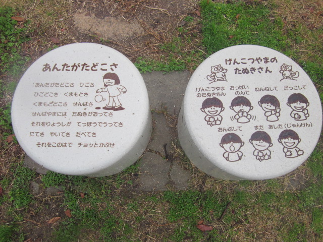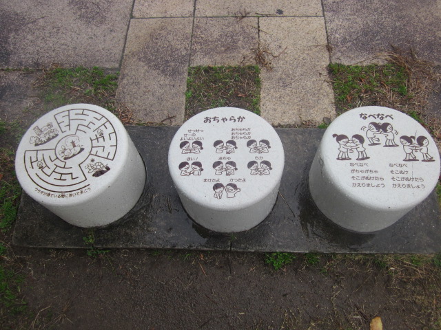 この記念碑を囲むように、お子様が楽しめるようなデザインで迷路や歌の歌詞が描かれているコーナーも、お子様のことを考えているなと思いましたし、何よりもこの記念碑越しに、八坂甚八氏の顕彰碑が望めるアングルになっているのも、凄く示唆的に感じました。