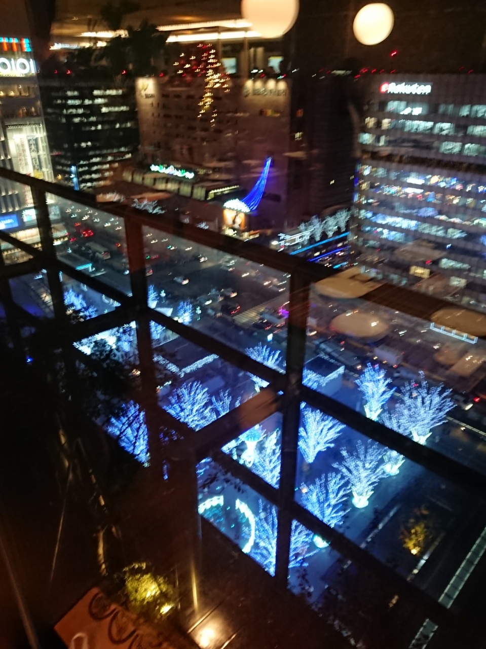 外に出て、間近にイルミネーションを見るのもいいですが、室内からは寒くなくていいです。