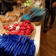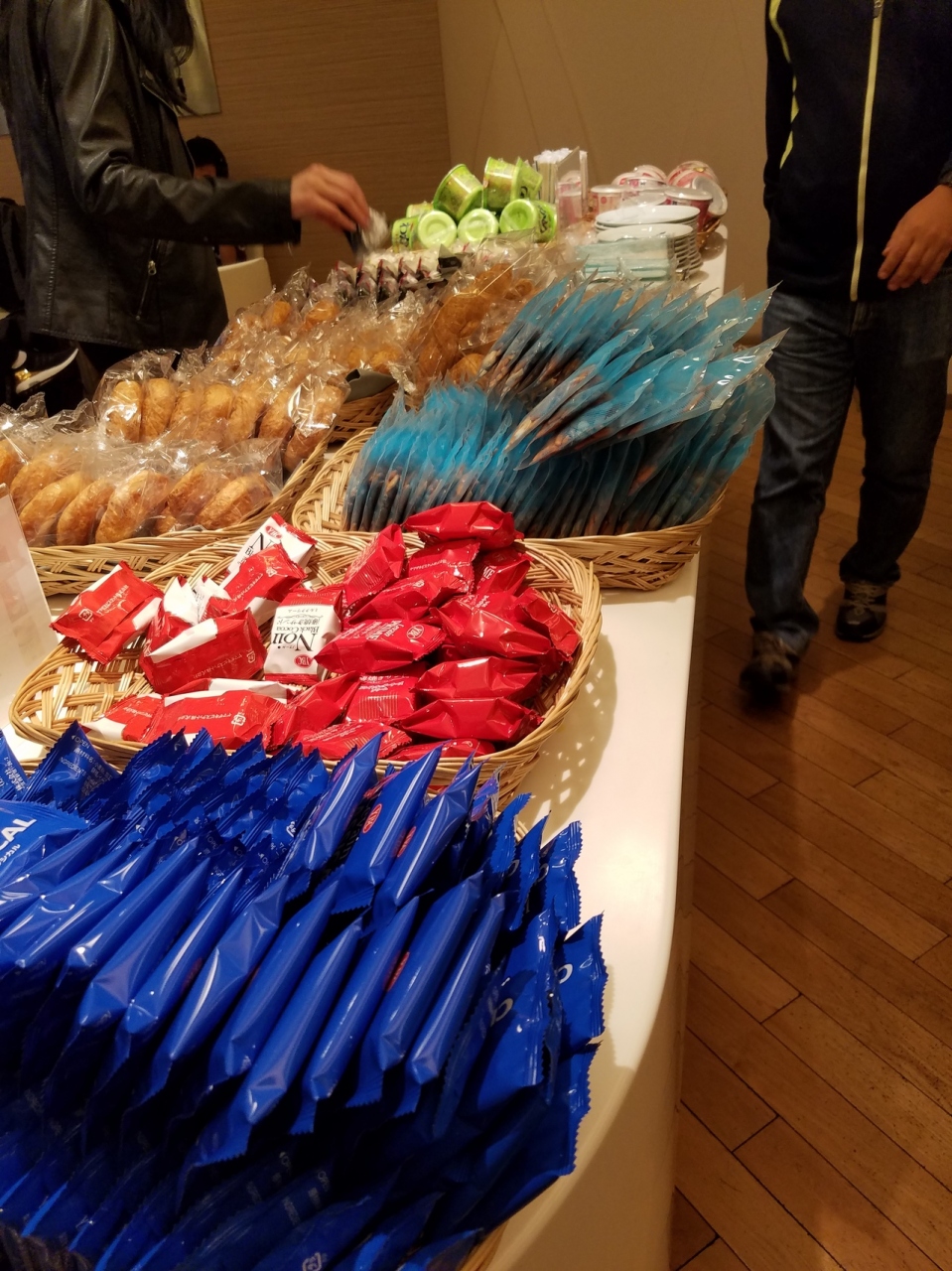 軽食のみでおにぎり、袋入りのパン、お菓子、柿の種、カップ麺だけでホットミールはありません。