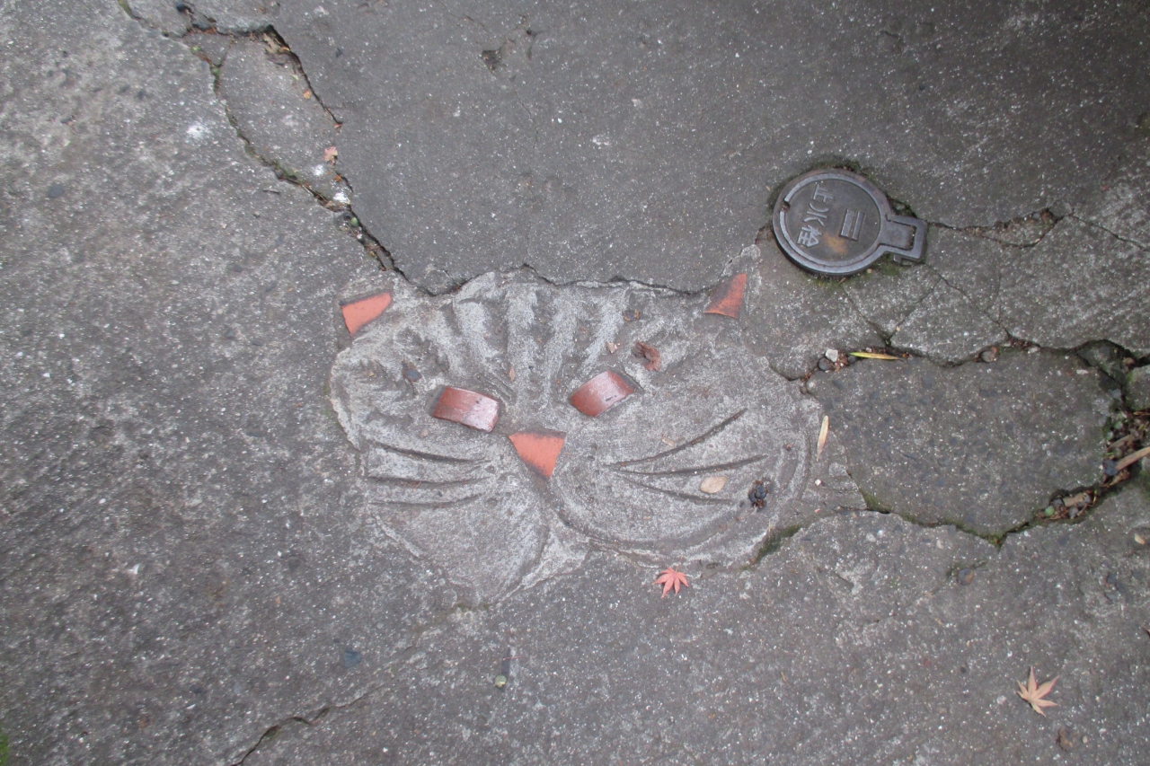 梟の館から下りの細い路地・猫の細道があります。アーティストの園山春二さんが描いた福石猫が点々と置かれていたり、路面にネコちゃん模様が埋め込まれていたりと、楽しみながら散策をすることが出来ました。道筋にはいくつかの施設が集まっていますが、基本的には、若い女性達をターゲットにしている様に感じました。