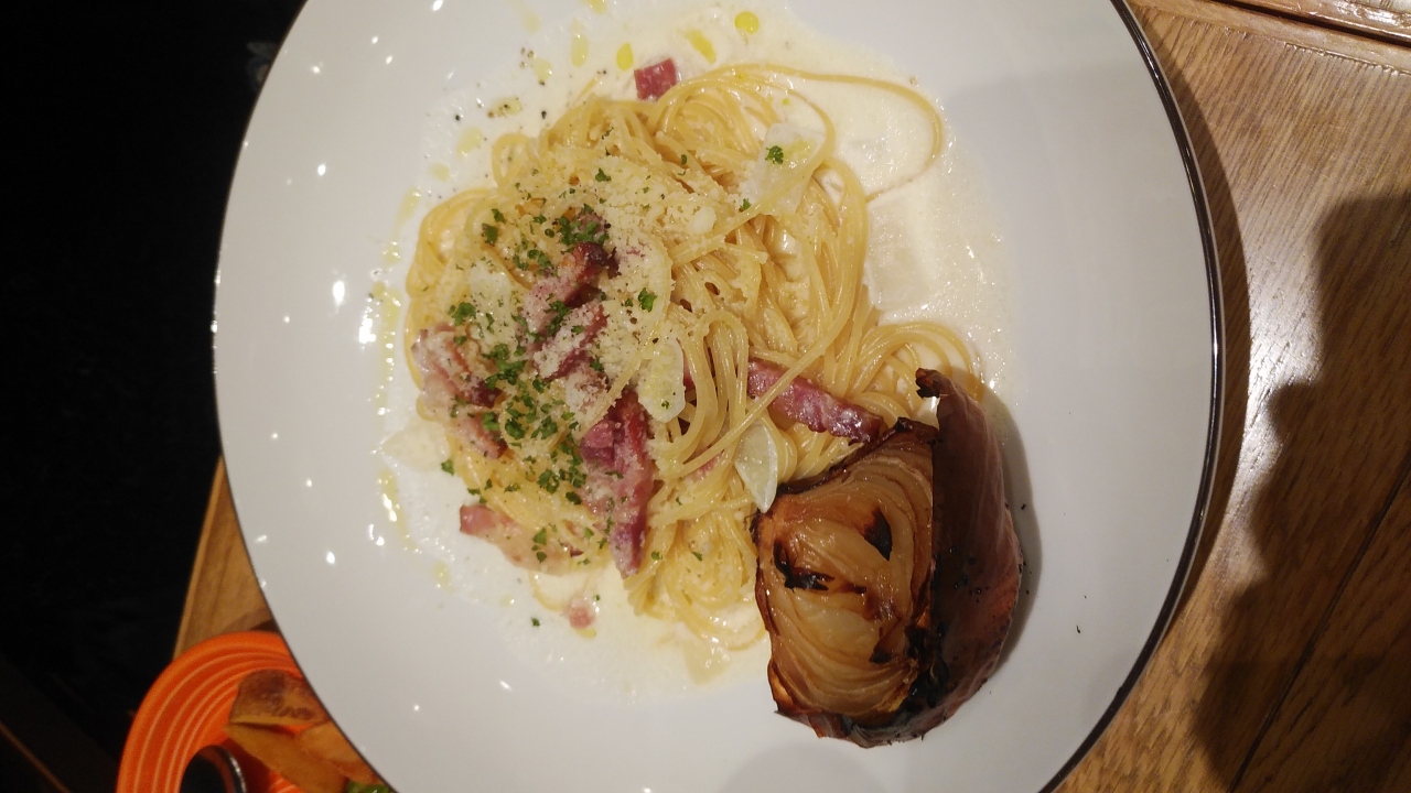 今日はクリスマスプレゼントを自分で選ぶというので孫を連れて買い物にいきランチしました。食事処も孫が選んだハタケノパスタでした。開放感がありサラダバーの種類も豊富で良かったです。私はボロネーゼを、妻はランチコラボで本日のパスタとドリアを、孫はベーコンクリーム、全員サラダバーと妻と孫はドリンクバーを注文。サラダーバーは種類が豊富で美味しかったです。又パスタに着いている玉葱が甘さがあり非常に美味しかったです。