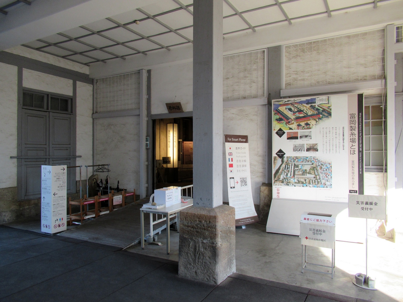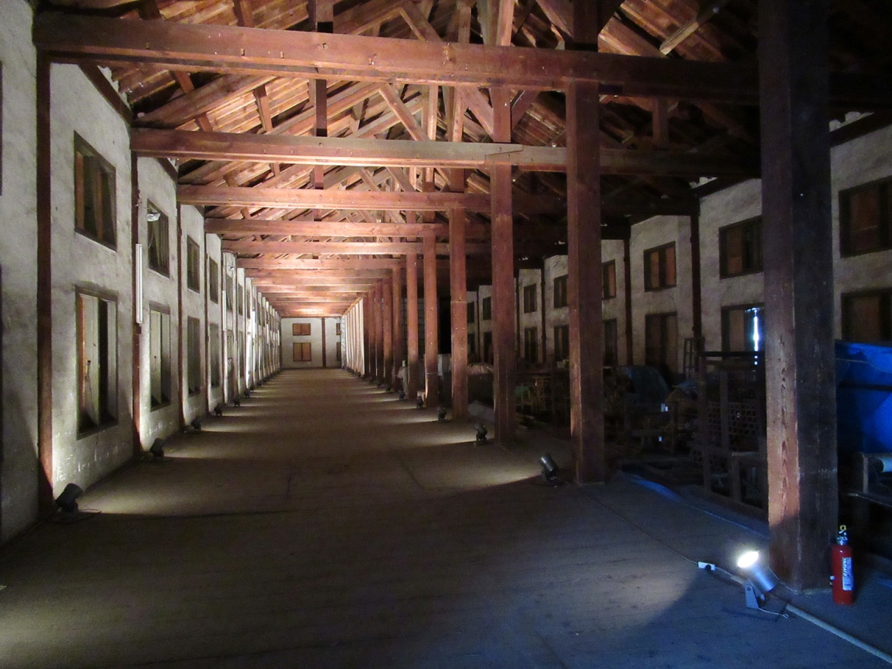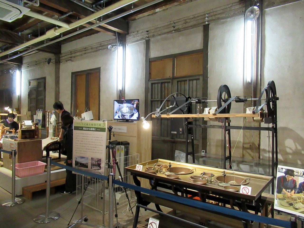 行楽の秋・日曜日に晴天という条件も重なってか、開場時間には既に50人ほどが並んでいました。通常9時半からのガイドツアーが9時15分から始まりましたし、10時過ぎくらいからは団体客の姿も多く、敷地内は多くの人の姿であふれていました。入場料1000円(私は上州高崎駅から上信電鉄の富岡製糸場往復割引乗車券を利用しましたが…)、ガイドツアーorイヤフォンガイド200円、西置繭所の改修工事現場見学でヘルメット台200円と、思ったよりも出費がかさみましたが、世界遺産に登録されると維持費も大変なのでしょう。さて正門正面にある東繭置所では映像や資料で富岡製糸場の歴史などが学べますし、座繰り体験もあって勉強になります。女工さんが働いていた繰糸場、巨大な鉄水溜、社宅群、診療所など、思った以上に見所の多い施設でした。さすが国宝!