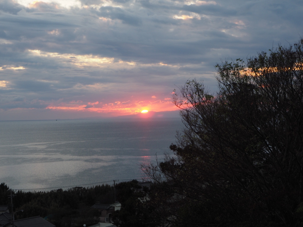 御本尊の「十一面観音」が崖の中腹に磨崖仏として刻まれているそうですが、夕方だったのでお堂が閉められてしまい中を見ることができませんでしたが、海側に回された舞台からは、ちょうど沈む夕陽が見られてとてもきれいでした。