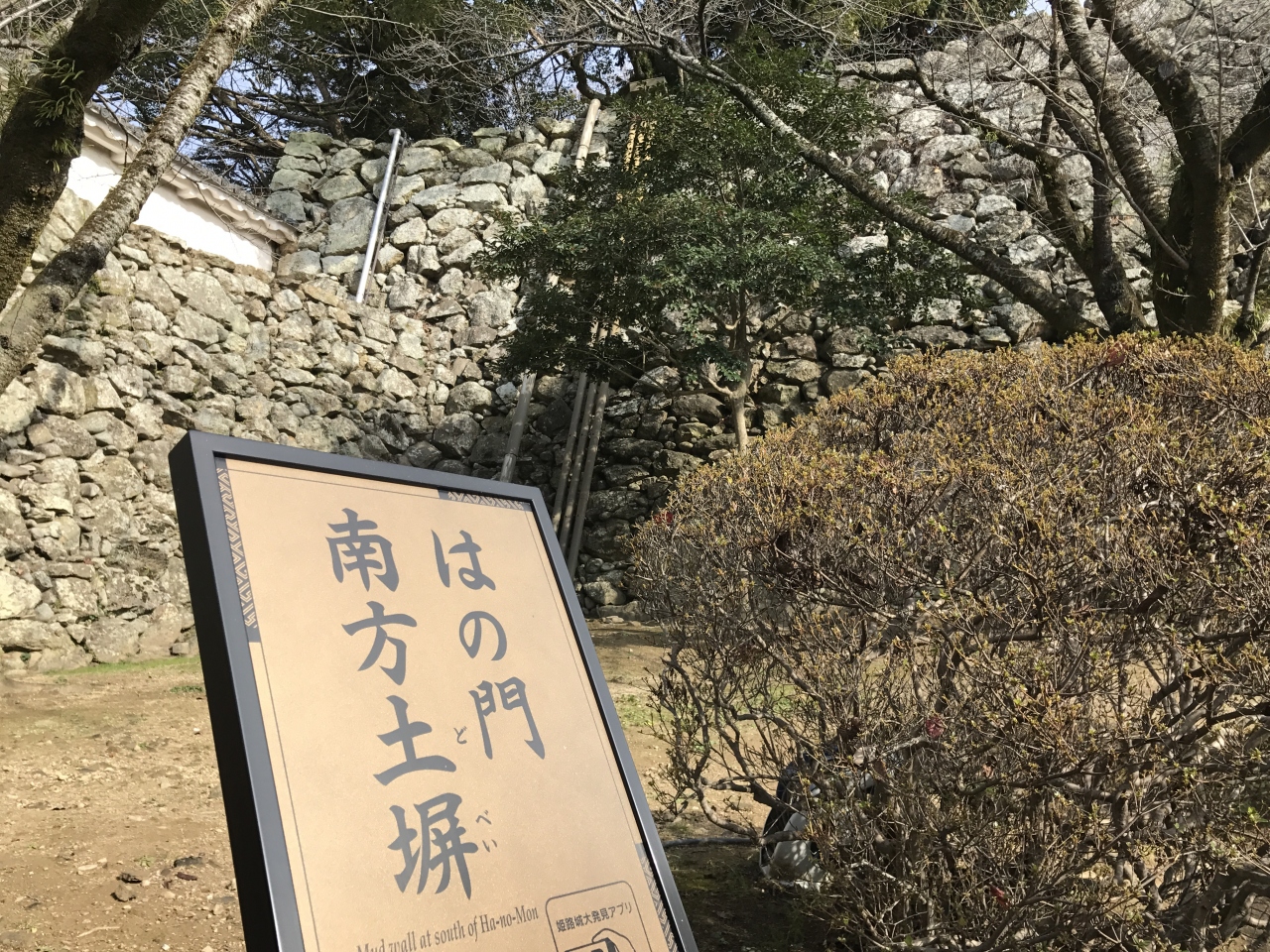 はの門まえの道のりの土壁がいい感じです。門自体はこじんまりしていますが、お城と土壁が良い感じの写真スポットになっています。
