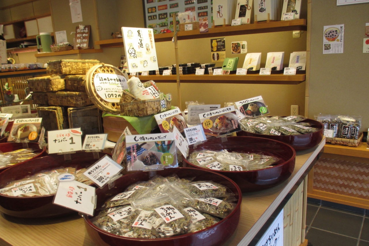 水道の海岸線から小洒落た築姫小路を抜けた先に北前亭本店がありました。試供品の接待にあずかり、納得して味付ちりめんを買いました。あれもこれもと目移りして仕舞いますが、小袋に入った少量パックがあったので、何種類も買えて良かったです。