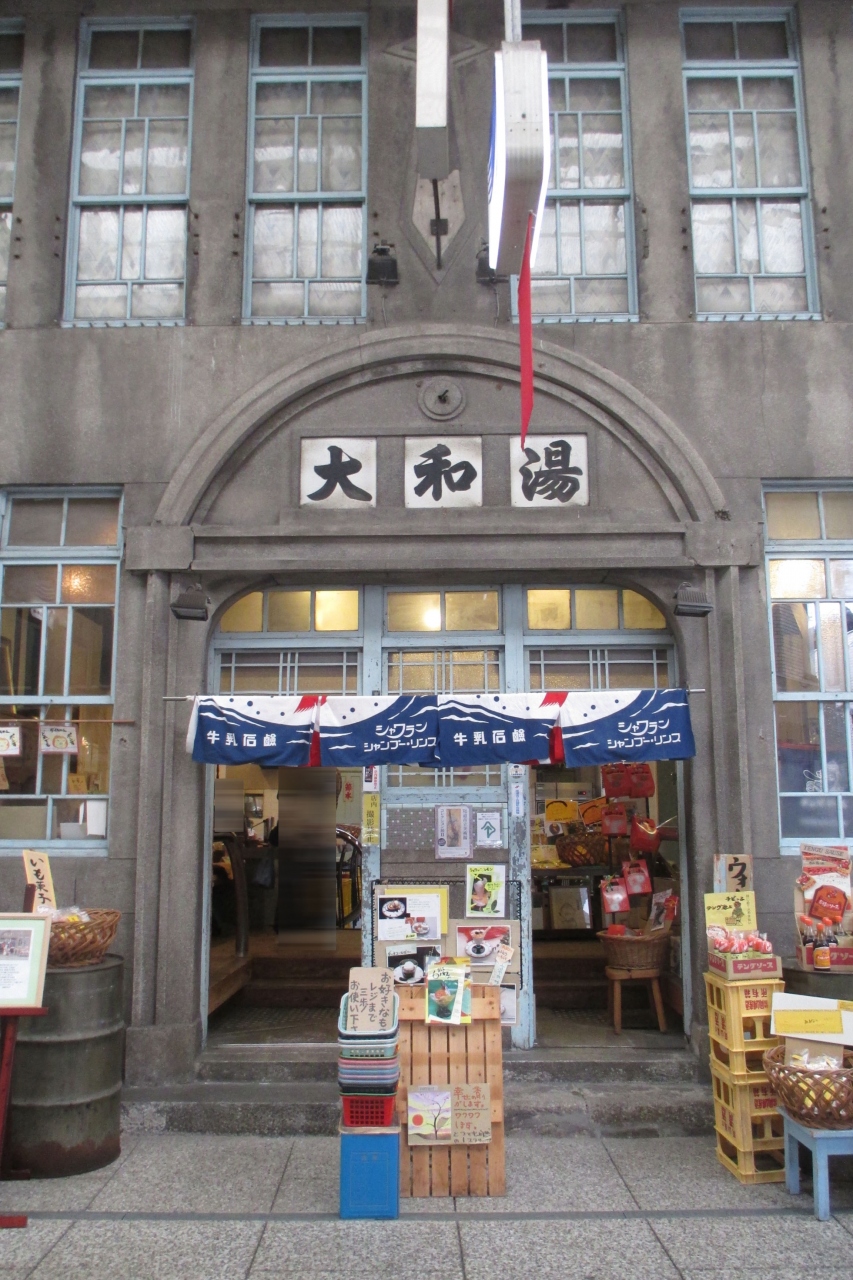 尾道本通りのアーケード街を歩いていたら、コンクリート造りのさっぱりとしたファサードの大和湯がありました。銭湯としてはずいぶんと現代風な外観です。とはいっても、お土産品が並べられていて、お土産屋さんに転身していました。奥はカフェ風になっていましたから、そちらが本業でしょうか。近くの尾道商業会議所記念館の方はお金を掛けましたといった感じの建物ですが、こちらは庶民のための建物ですから、それなりです。