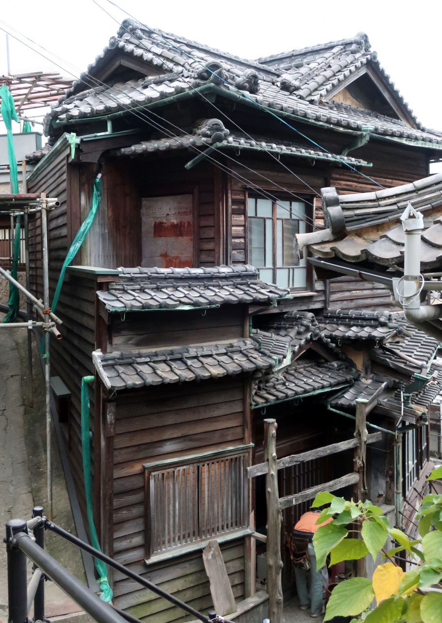 千光寺周辺の「洗練された」斜面地も尾道だと思うが、尾道ガウディハウス辺り一帯の濃い街並みも尾道だ。わずか10坪の急傾斜地に立てられた洋風建築。建てられた昭和8年は、駅前にある蘇和稲荷ゆかりの山口玄洞の寄付により上水道が敷設され、尾道経済が繁栄を迎えていたころだ。豊かさを背景に急傾斜と四角ではない狭あいな土地という制約が生み出したユニークな建築だ。地元のNPOが改修して定住のシンボルとして活用している。この制約の中で暮らし、はぐくまれた文化が<尾道>であるならば面白い取り組みだと思う。最近は広島など都市部では資金的に営めないショップを尾道の急傾斜で開業するケースも増えているという。この不自由さが、この制約がおしゃれなのだ。内装も急斜面と狭隘を生かした面白いものだと聞いてのぞいてみたかったが、行ったときは大工さんが改修していた。サグラダファミリア教会よろしく未完がキーワードなのだ。