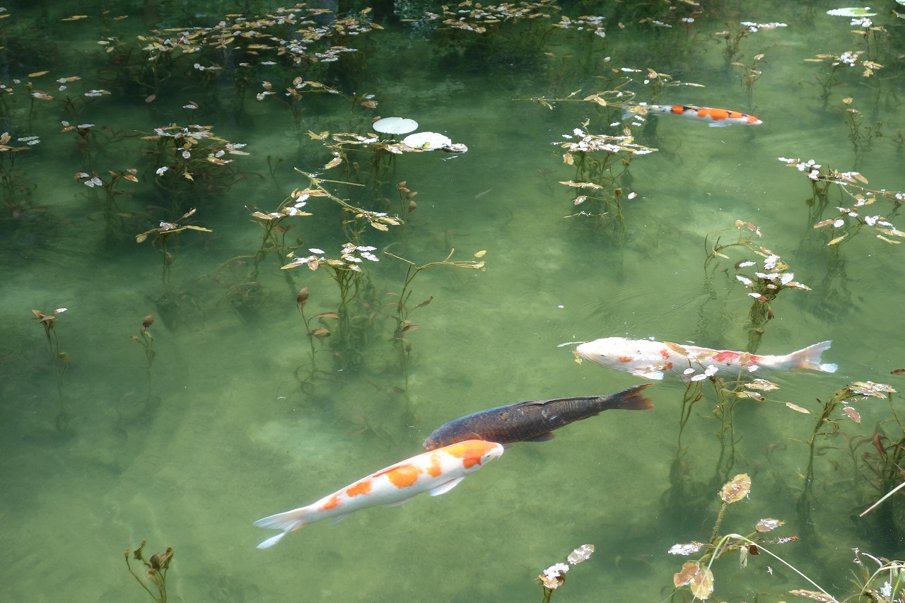 5月以降雨が少ない影響で湧水が少ない状態らしく少し濁り気味でしたがそれでもモネの池という名にふさわしいきれいで神秘的な池でした。この時期、蓮の花が咲いていました。JR岐阜駅からほらどキウイプラザ行きのバスで約1時間、そこから無料の板取ふれあいバスで約15分、あじさい園前で下車すぐです。戻りは1時間後のバスで帰りました。とにかくバスの本数が少ないのでよく調べる必要があります。