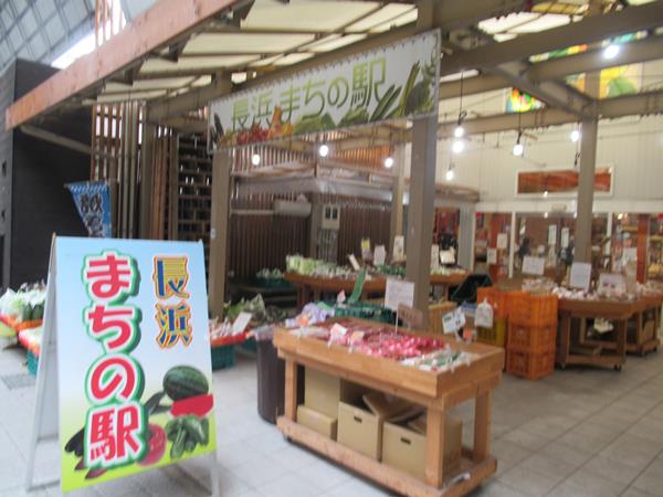長浜大手門通り商店街アーケードの中にある地元の特産品店です。地元の野菜やお土産品が並んでいます。間口は狭い上に入口が地味な感じなので一瞬通り過ぎそうになってしまいましたが、奥行があって外から見たよりも内部が広いので立ち寄ってみると面白いかと思います。
