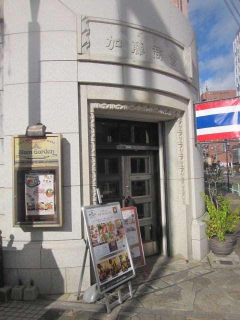 堀川沿いに建つ、大正時代初期の洋風建築ですが、タイ領事館として使用された時代の名残から、今では1F部分がタイ料理店として運用されています。