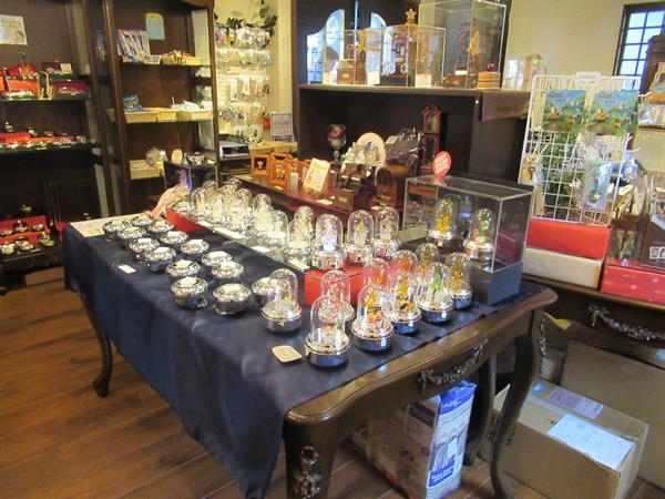 黒壁ガラス館の建物に比べると小さい建物ですが、黒壁の板に蔦がからまる様子はとても風情がありました。中に入ってみると懐かしくってきれいな音色のオルゴール。きらびやかに目を引くオルゴールに数々になんだかメルヘンの世界に引き込まれてような気持ちになりました。