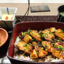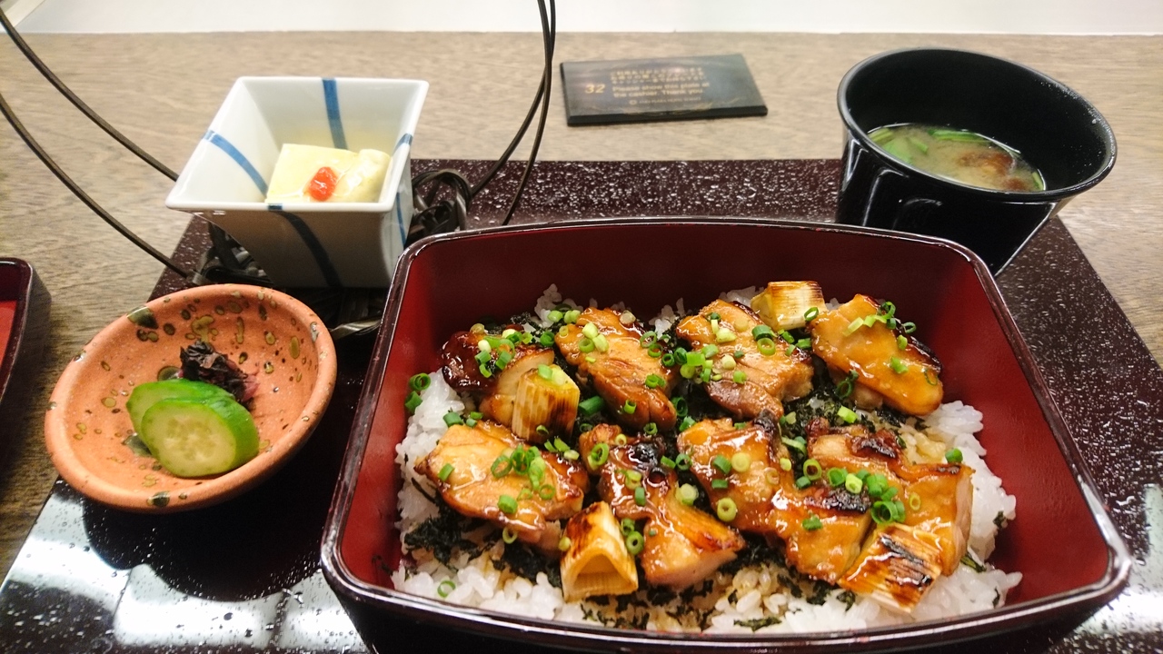 ランチメニューでは2番目に安い鶏の照り焼き重(税サ込¥2,000)を注文。鶏の照り焼き重にお味噌汁、香の物、冷奴がついてきます。鶏肉は柔らかく、お上品な味付けでした。量は少なめです。