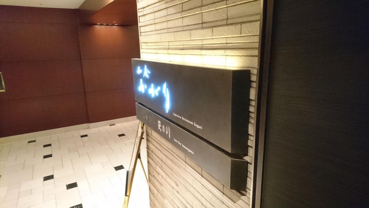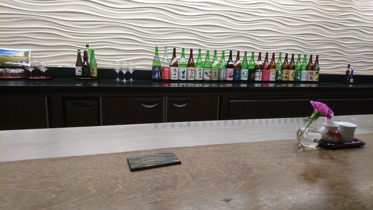 テーブル席は満席で、店内にある日本酒バーのカウンター席で食事をいただくことに。カウンター席とは言え、ホテルの中のお店だけあってかなり広い席です。