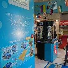 美ら海水族館のアンテナショップです。国際通りのお土産屋さんの二階にあります。水族館に関するお土産も沢山ありますが、私のオススメはガチャガチャです!また、店内にはジュースカウンターやトイレもあって、ちょっと休憩には便利なスポットです。