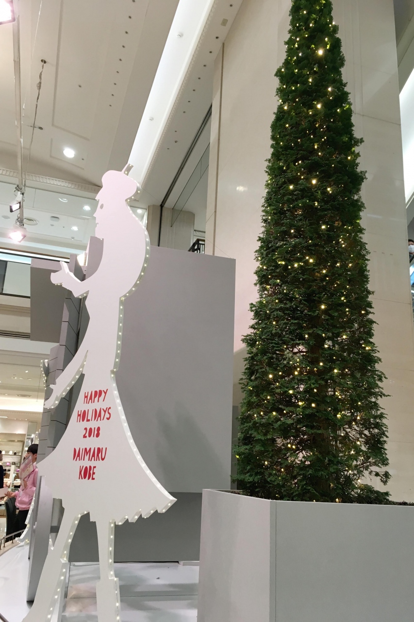 神戸を代表とする百貨店の大丸。大丸は東京駅の大丸もそうですが、どこのお店でも食料品が強いのもあって、ケーキなどもいろいろなお店が揃っていますからそれはものすごい混雑ではありましたが、クリスマス時期だけあって華やぎがある店内でした。