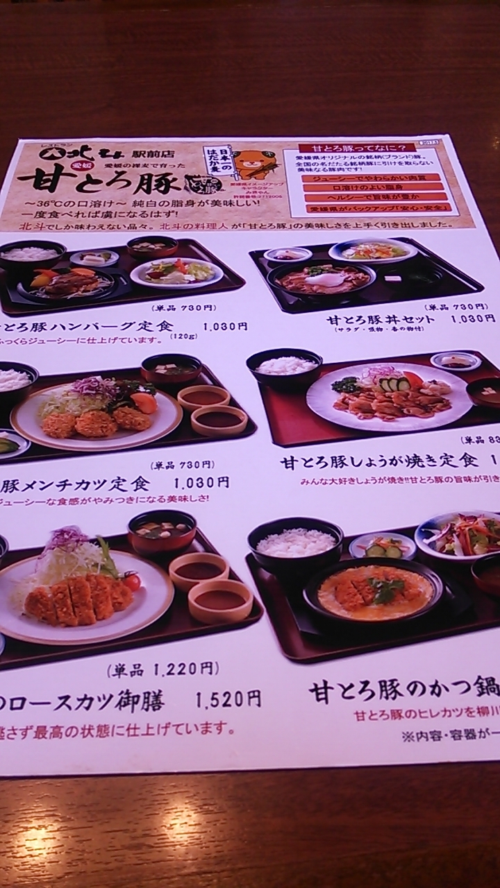 2018年12月24日現在、鯛の他、甘とろ豚・鰤姫等ご当地食材を使用したメニューが多数ありました