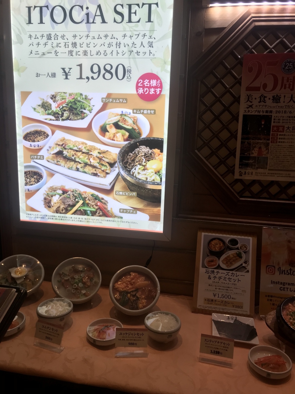 有楽町イトシアにある韓国料理屋さんの妻家房です。イトシアだけの限定のイトシアセットはキムチの盛り合わせにサラダとチャプチェに石焼ビビンバまで付いてくるセットで2人前から注文出来ます。マッコリによく合います。