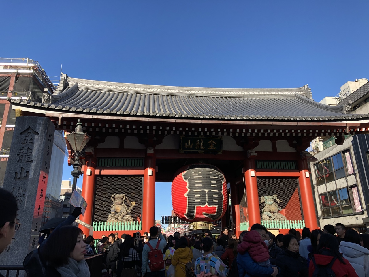 この門をくぐって宝蔵門までの参道が仲見世通りで両側にはお店が出ていて、食べ物や土産物屋など歩いているだけで楽しめます。