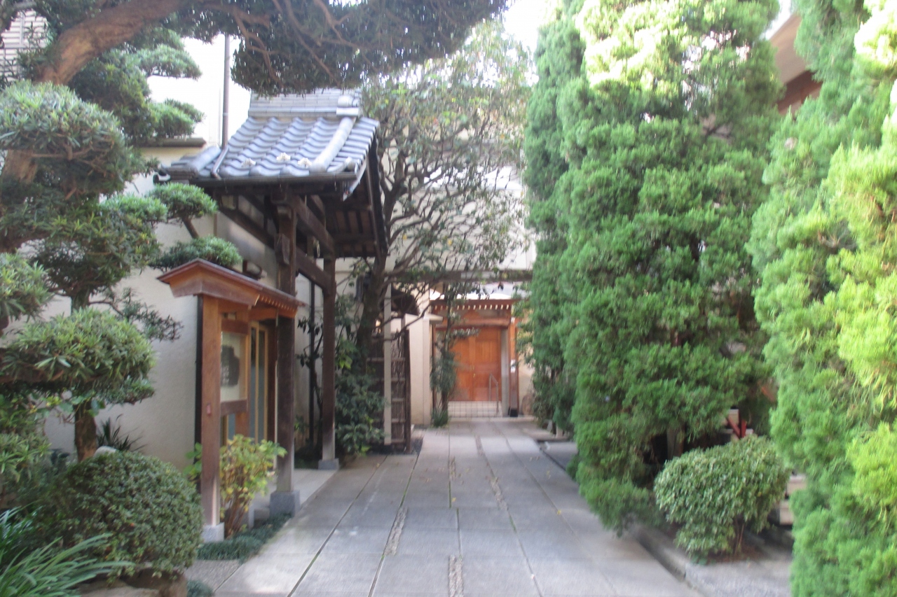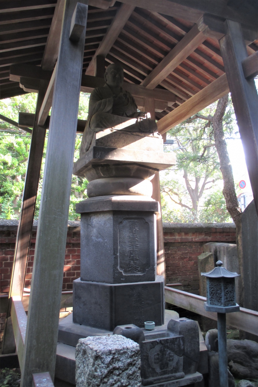 春日通りを西に進み、中央大学の理工学部を通り越した先から左の路地へ入ったところに常泉院がありました。入口の左横に吹き抜けのお堂があり、何かを唱えていらしゃる様子の数珠を持った弘法大師の像が納まっていました。なお、創建年代は不詳ですが、江戸時代初期(1627年以前)と伝えられているとのことです。