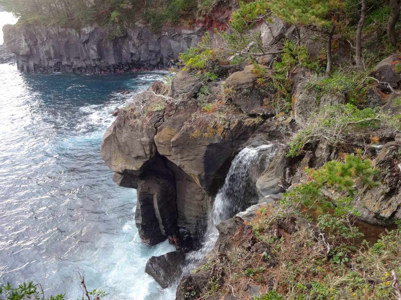 我々の歩いた遊歩道と海面との高低差はかなりある断崖絶壁にある滝だということです。