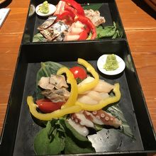 コースをいただきました。魚料理、野菜料理と各種揃っていて、見た目でも楽しめましたし、料理のボリュームもあり、満足できました。兵庫県が山の幸にも海の幸にも恵まれていることが実感できるお店です。